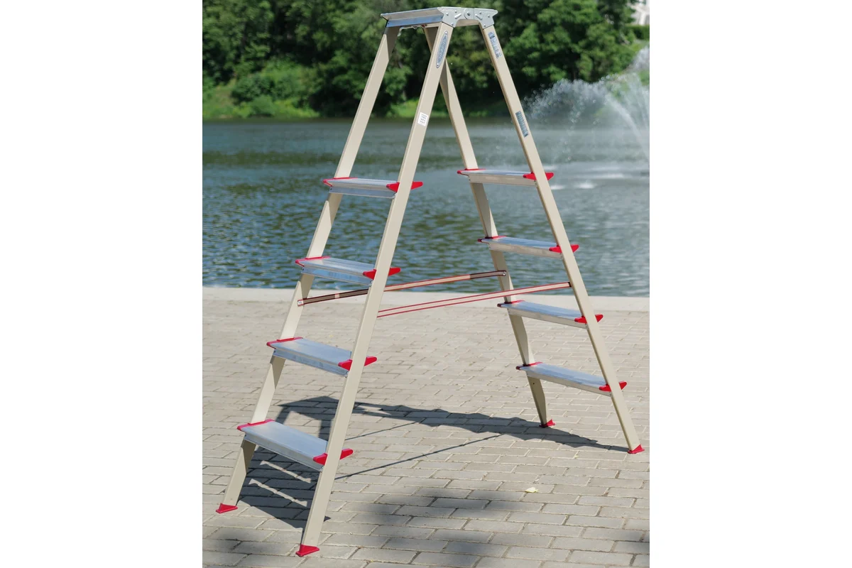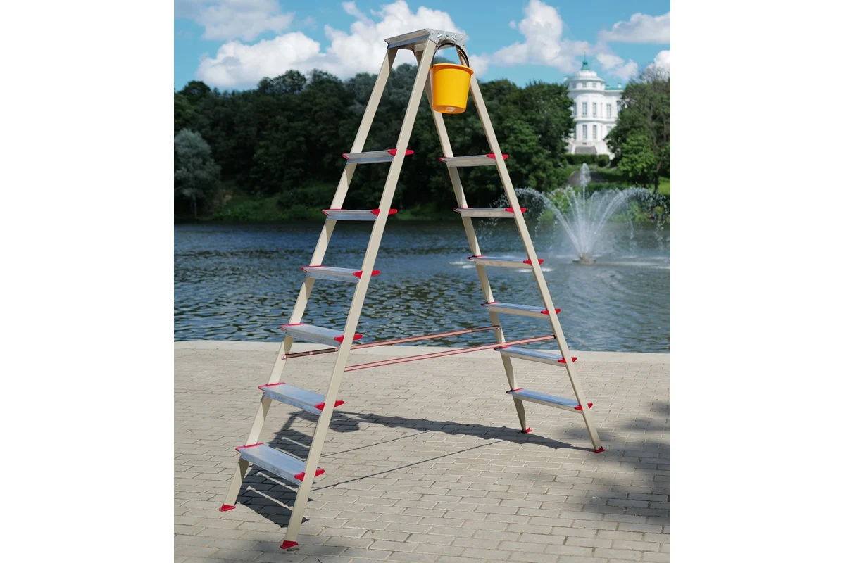 Алюминиевая двусторонняя стремянка «Эйфель» - это надежность, долговечность, практичность и комфорт. С нашей лестницей Ваша работа станет проще и приятнее!